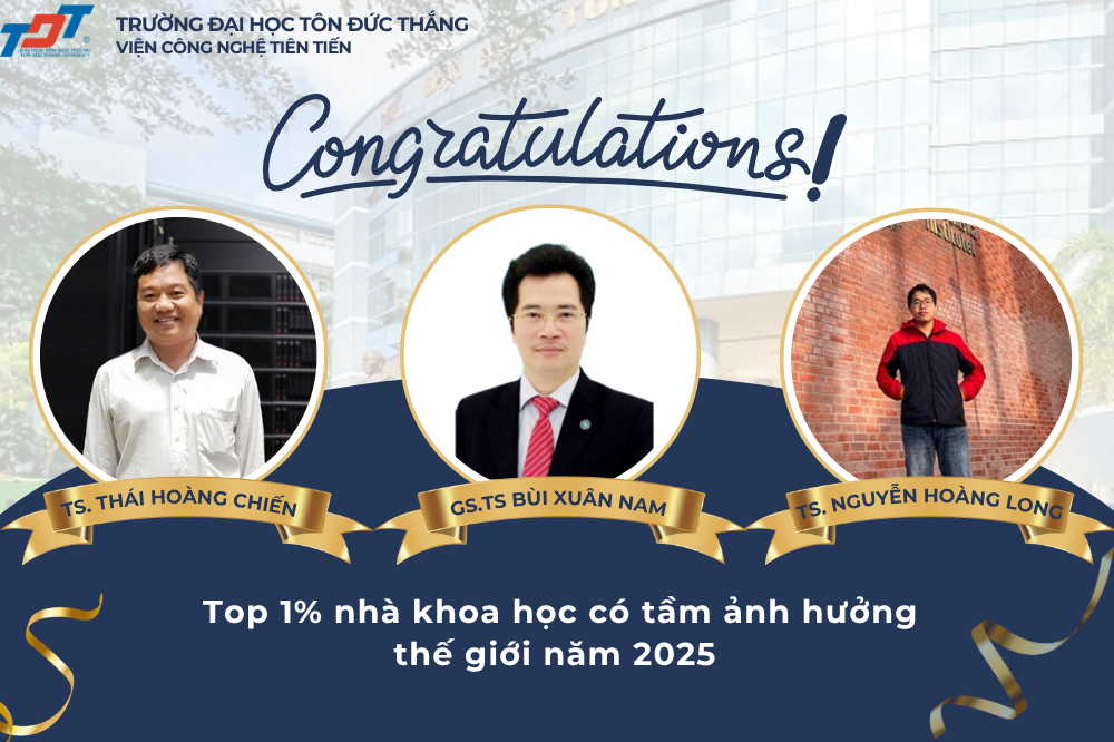 Nhà xuất bản Elsevier và Đại học Stanford (Mỹ) vừa công bố Bảng xếp hạng những nhà khoa học có tầm ảnh hưởng nhất thế giới năm 2025 dựa trên dữ liệu trích dẫn từ Scopus tính đến hết năm 2024. Trong top 1% của gần 12 triệu nhà khoa học đang hoạt động theo dữ liệu công bố, Viện Công nghệ Tiên tiến, trường Đại học Tôn Đức Thắng có 03 nhà khoa học
